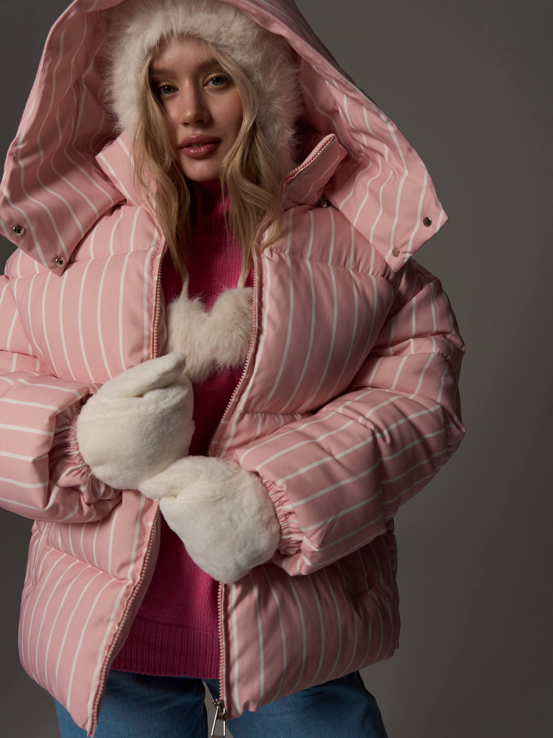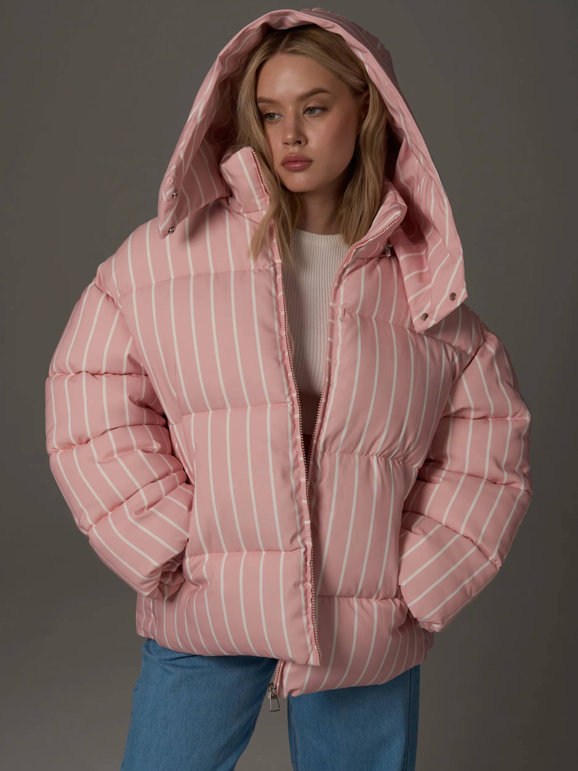 Стильная женская куртка для зимы — идеальный выбор для девушек, которые ценят комфорт и моду. Утеплённая короткая модель в стиле оверсайз подчёркивает тренды Pinterest и Y2K, сочетая лёгкость и тепло. Пуховик с капюшоном подойдёт как на невысоких, так и на высоких девушек, создавая современный силуэт. Эта модная укороченная зимняя куртка в полоску с кулисками гармонично впишется в любой гардероб и станет вашим фаворитом для холодного сезона. Тёплая, практичная и невероятно стильная — вдохновлённая лучшими идеями pinterest и уличной моды.