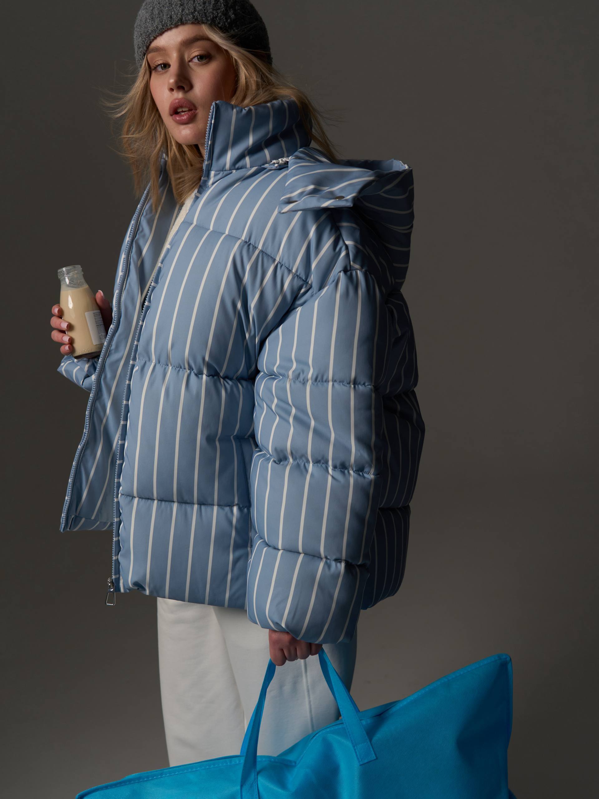 Стильная женская куртка для зимы — идеальный выбор для девушек, которые ценят комфорт и моду. Утеплённая короткая модель в стиле оверсайз подчёркивает тренды Pinterest и Y2K, сочетая лёгкость и тепло. Пуховик с капюшоном подойдёт как на невысоких, так и на высоких девушек, создавая современный силуэт. Эта модная укороченная зимняя куртка в полоску с кулисками гармонично впишется в любой гардероб и станет вашим фаворитом для холодного сезона. Тёплая, практичная и невероятно стильная — вдохновлённая лучшими идеями pinterest и уличной моды.